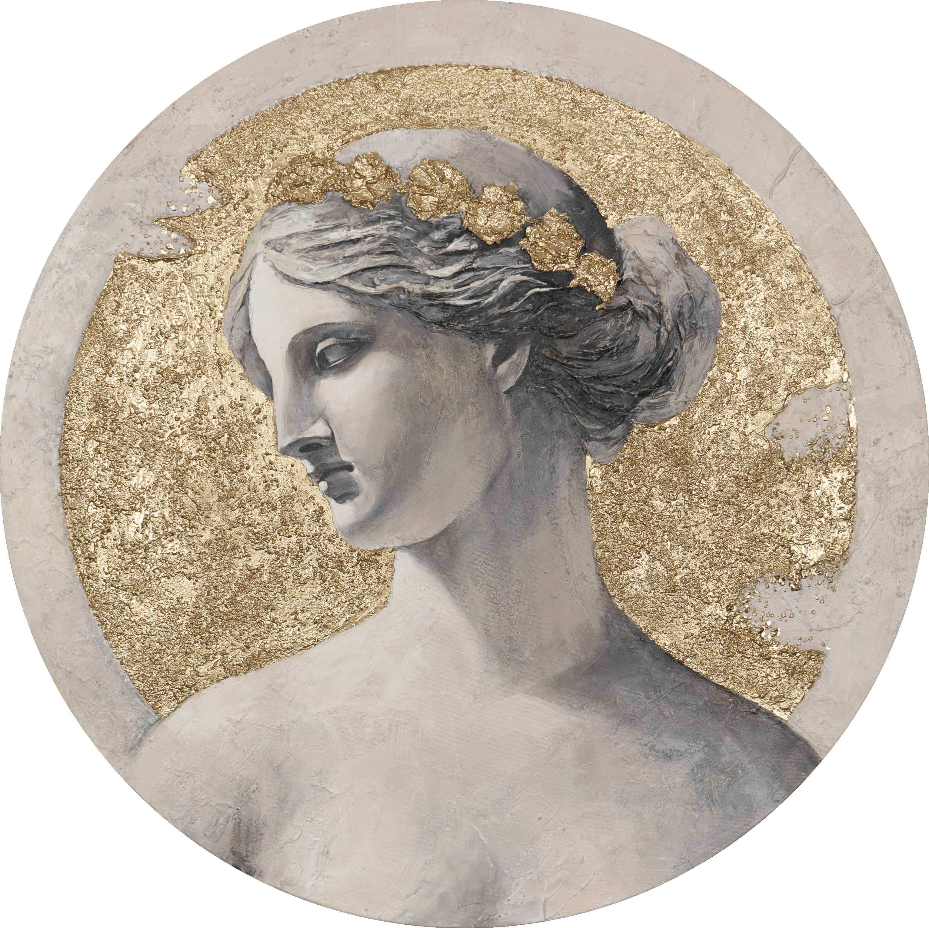 Modern Gold Wall Art "Muse of Light" – Round Hand-Painted Canvas for Luxury Decor