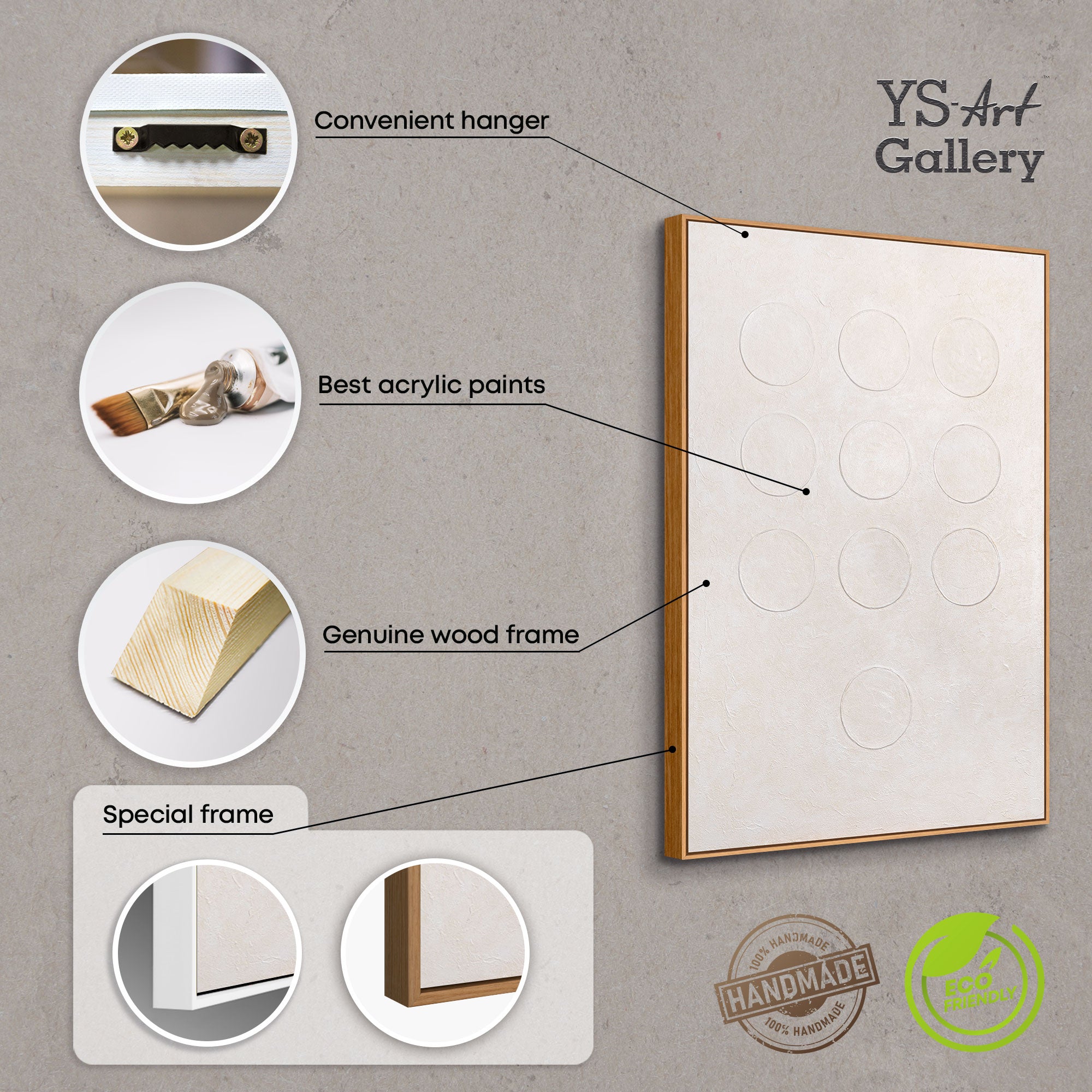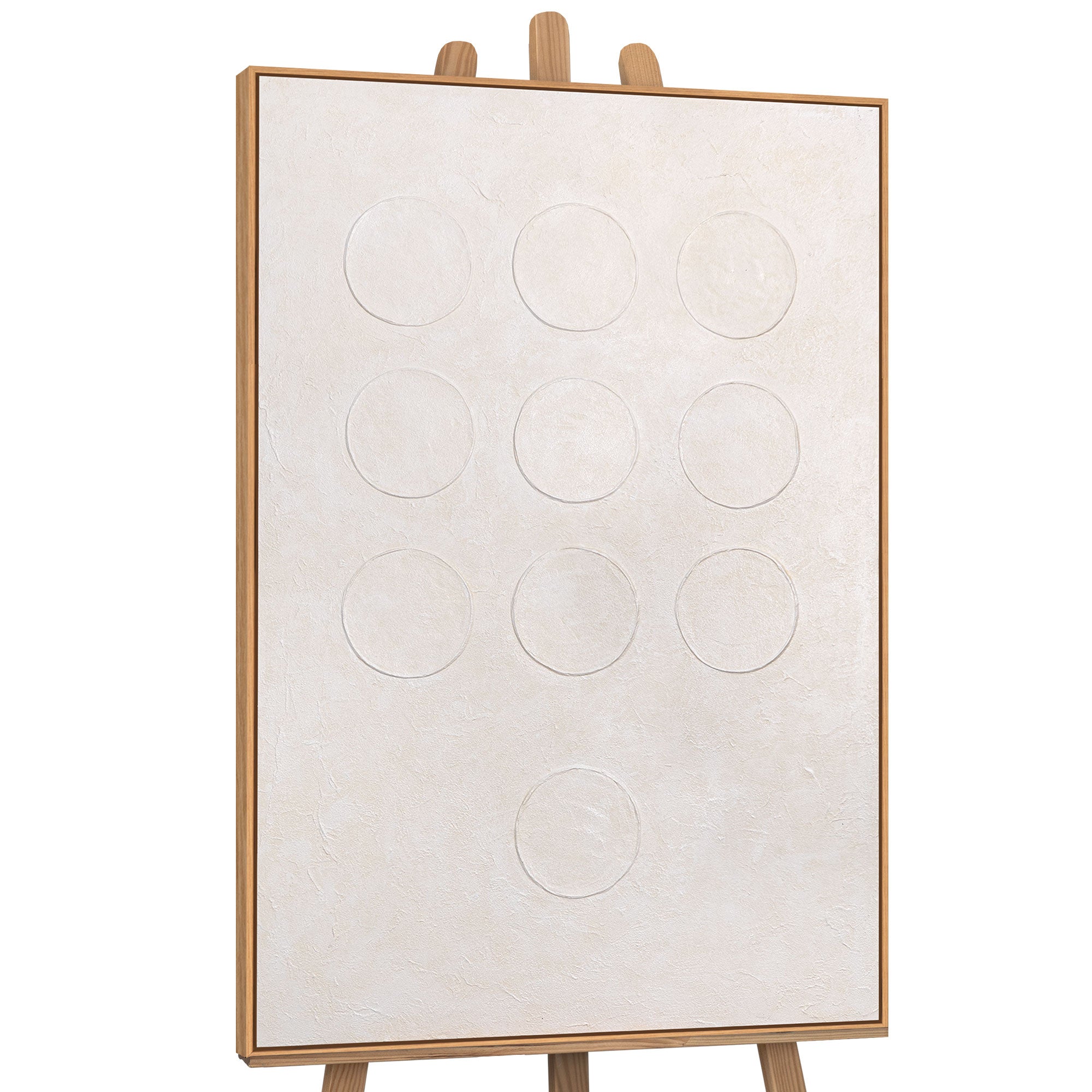 „Weißer Code“ verkörpert die Essenz moderner strukturierter Acrylmalerei. Neun kreisförmige Formen treten subtil aus der Oberfläche hervor und schaffen eine Balance zwischen Ordnung und Bewegung. Die zarten Creme- und Weißtöne verleihen dem Werk eine klare, minimalistische Eleganz, die perfekt zu ruhigen, modernen Räumen passt.